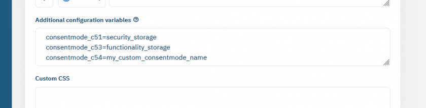 In addition to the above mentioned Google Consent Types, you can create custom consent matching types by using Client-side Configuration Variables for each purpose. For example the following line will set functionality_storage