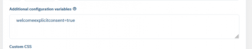 or General settings > Advanced settings > Additional configuration variable welcomeexplicitconsent=true